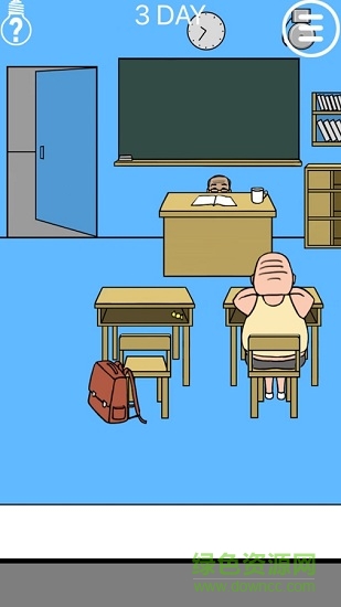 第三关考验玩家的时机把握能力。首先在书包里找到一包薯条,将其拖动给旁边贪吃的同学。当老师被这个违规行为吸引注意力时,抓住时机点击教室门,主角就能趁乱成功逃脱。
