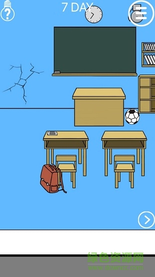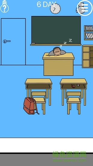 第六关需要玩家进行多次互动。首先获取场景中的书包,将其放置在门前作为障碍物。然后连续点击门把手四次,直到把手脱落。最后点击教室门,大门就会打开,主角得以顺利逃脱。
