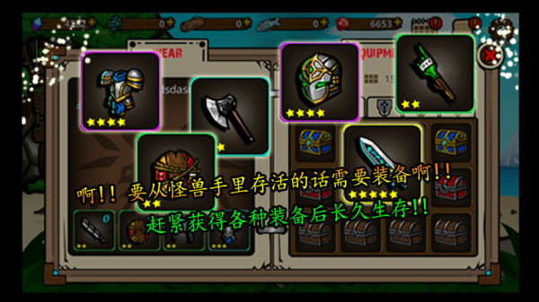 3、获得家和装备,雇佣守护者,使自己变得越来越强大;