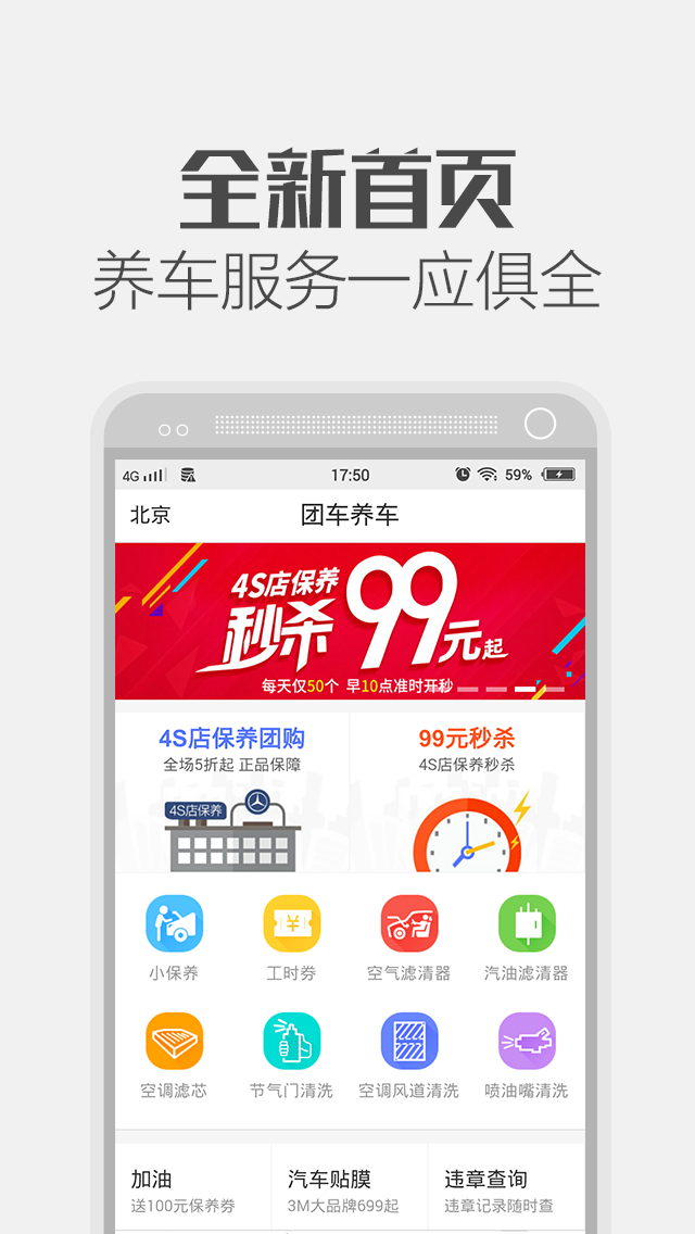 4S店专业保养团购,超低价格;团车养车与全国上千家4S店达成合作,为用户提供原厂品质的保养服务,价格仅为门店的5折起。所有服务均采用原厂配件,并由专业技师操作,确保爱车得到最好的呵护。