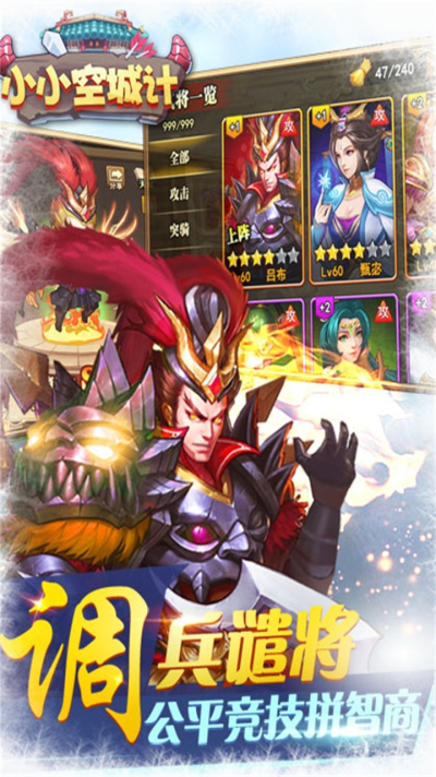 《小小空城计》是一款三国塔防类的策略手游,游戏中玩家排兵布阵攻城掠地和给路玩家斗智斗勇,游戏系统丰富玩法对样,对于喜欢塔防的玩家来说是哟很好的选择,还等什么叫上小伙伴战一场吧!