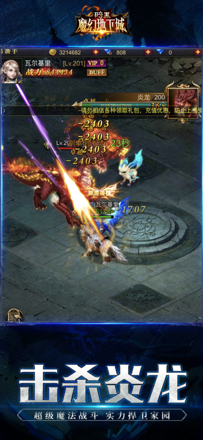 《魔幻地下城》是一款以拯救暗黑大陆为主题、能带给玩家屠魔猎兽体验的大型多人在线游戏。次时代高清画质,超强感官冲击,史诗般恢弘剧情,无限制地图探险,多人同屏交互体验,强力美眉公会,独特的多人混战玩法,PVP战斗的BOSS抢夺,让玩家能在轻松挂机零负担操作的情况下,享受多人交互、真实PK的快感。赶快加入魔域战斗吧!