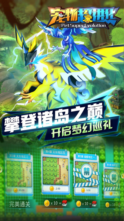 《宠物超进化果盘版》是一款以口袋妖怪为题材的放置卡牌游戏。这款游戏有着精美的游戏画面,而且高度还原了原作,有着众多明星宠物小精灵。而且有着挂机升级的玩法,不浪费你的宝贵时间。绝对带给你不一样的游戏体验。还在等什么,赶快来游戏堡下载吧。
