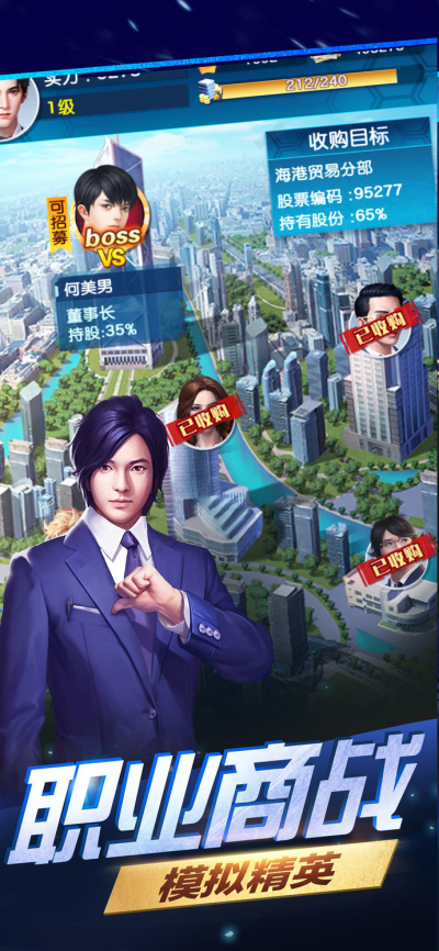 挑战关卡,商业谈判,收购各公司,让各金融巨头每天向你汇报工作和业绩。随着公司规模提升,自动解锁招纳更多的优秀人才前来效力。
