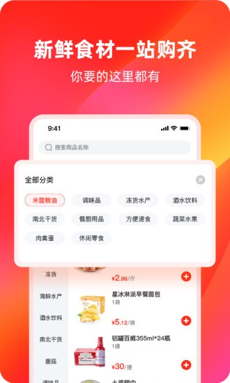【一站购齐】平台商品种类丰富齐全,从新鲜蔬菜水果到各类肉禽海鲜,从基础调味料到特色干货,从酒水饮料到厨房耗材,应有尽有。支持智能补货提醒功能,避免漏买错买。