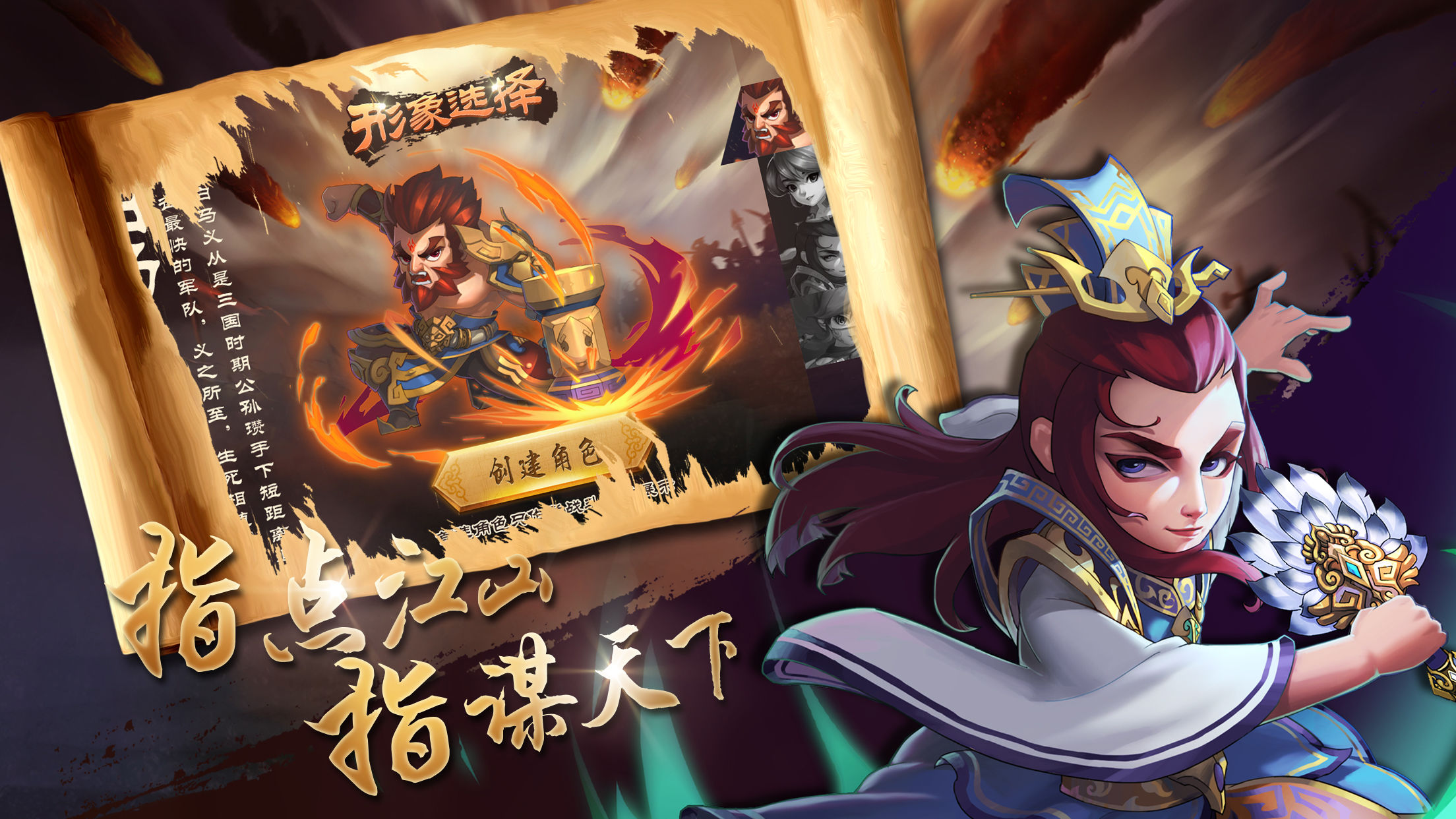 《指谋天下》是大连创想互娱首款自研产品,游戏为三头身Q版风格,整个基调偏轻松,国战、实时PVP、时间轴、将魂搭配等特色玩法。唯美的主场景,配合四季的变换给玩家不一样的视觉体验。
