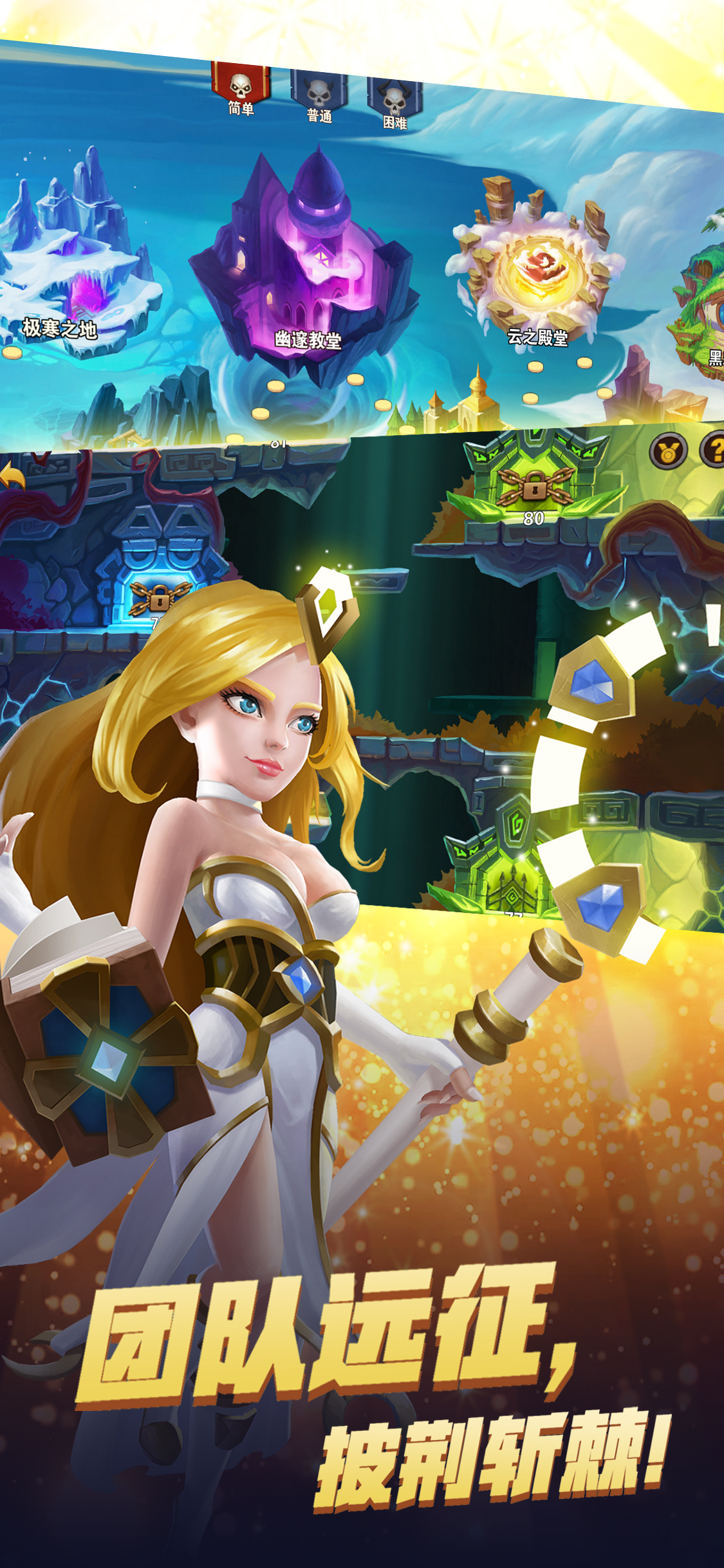 派遣一支英雄小队进行副本战斗,一键挂机,只需等待就可获取稀有道具、心怡英雄,轻松升级拿装备。