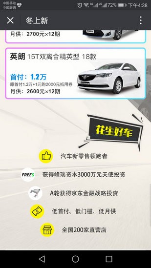 对于我们年轻人来说,买车是人生中的一件大事,需要慎重考虑和精心挑选。在众多购车平台中,《花生好车》凭借其便捷的服务和灵活的购车方案脱颖而出,成为许多消费者的首选。花生好车是一款专业的线上购车平台,致力于为用户提供多样化的购车方案,满足不同经济条件的购车需求。平台提供超低首付选项,最低可至车价的百分之十,分期期限最长可达六年,大大降低了购车门槛。用户只需完成首付并办理简单手续,即可快速提车,享受高品质的车辆服务。此外,花生好车还提供一年后换新服务,让用户能够根据自身需求灵活调整用车计划。