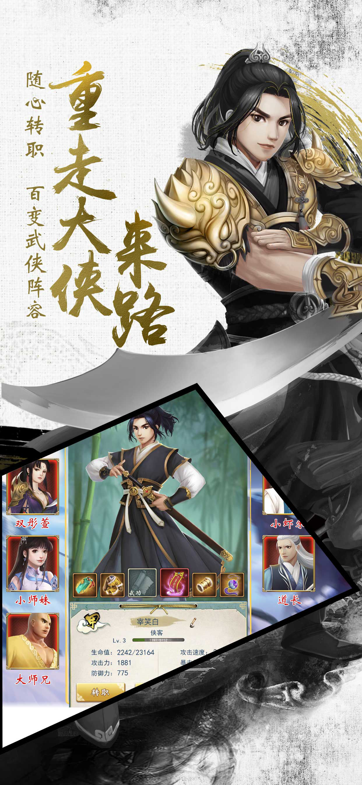 “纯武侠服饰打造更具大侠风范,自由的进行服装的搭配可以快速的变身大侠”