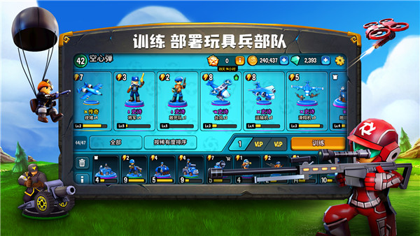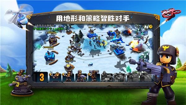 “小心长官!前方丛林可能有埋伏的敌人!”在游戏中,你将前往丛林、冰湖等不同的作战地点,观察战场地形、部署你的玩具兵团、巧妙利用兵种属性克制来战胜你的敌人!