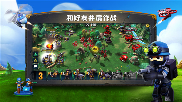 嘿,指挥官,看到对面两个倒霉的家伙了嘛?带上你的好友一起击退他们!游戏中,你可以与好友组队进行2V2协同作战,体验更多兵种的搭配,更具策略的战斗。