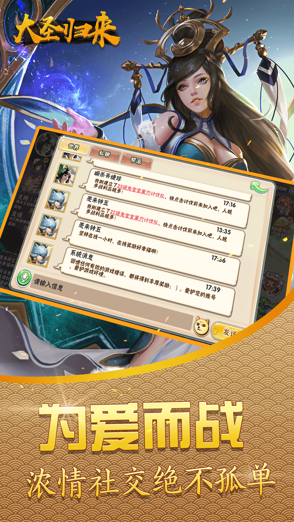 《西游:大圣归来》主要还是以西游故事为背景的,斩妖除魔也是必不可少的主线任务,在跨 越三界中不仅仅充满的凶险,还有爱恨情仇!拯救苍生于水火的任务就交给玩家们了!现在就来加入游戏吧!