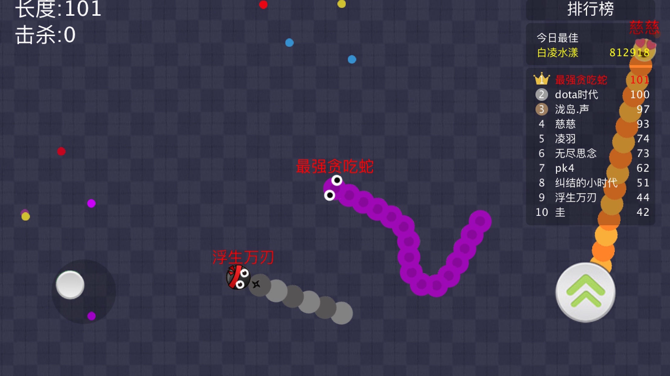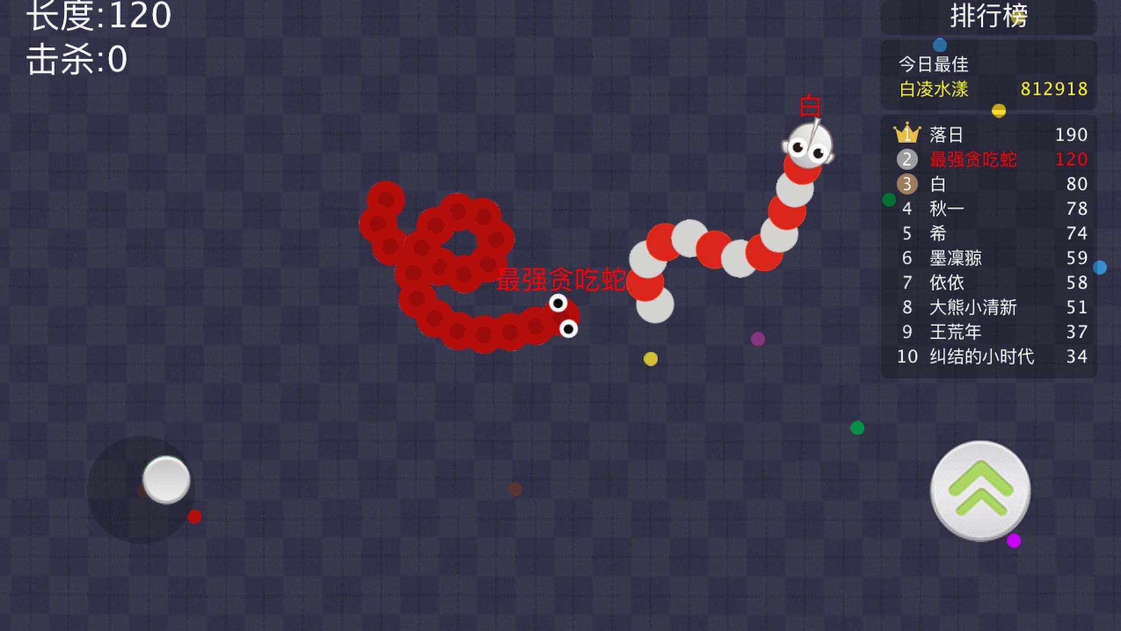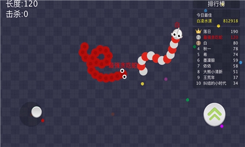 3.长按加速键,用巧妙的走位让蛇身被别人撞上,就可以吃掉尸体迅速变长。
