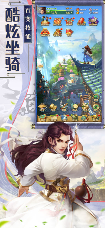 江湖自古风云涌,武林从来不寂寞!游戏内更有华山论剑、武林大会、血战襄阳、藏兵阁夺宝、天下第一门等各种丰富的战斗玩法,让你品味武侠世界的荡气回肠!同时亦能开宗立派自立山门,开启丰富的门派玩法,享受经营的乐趣!