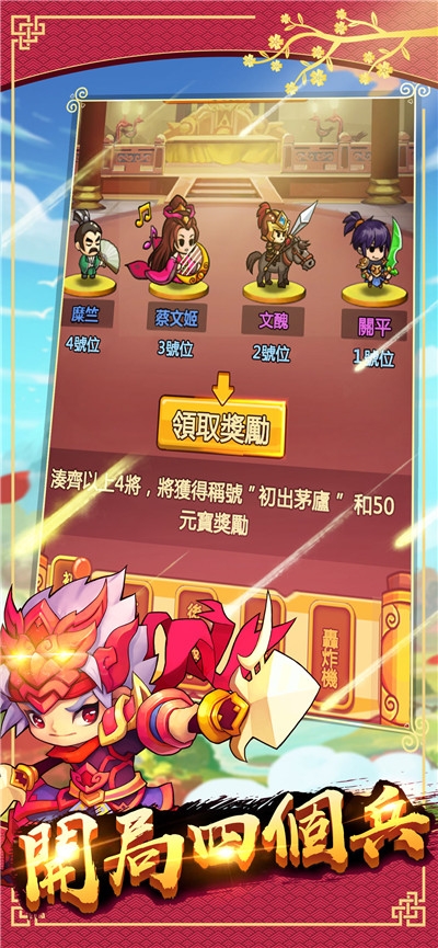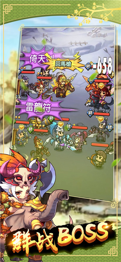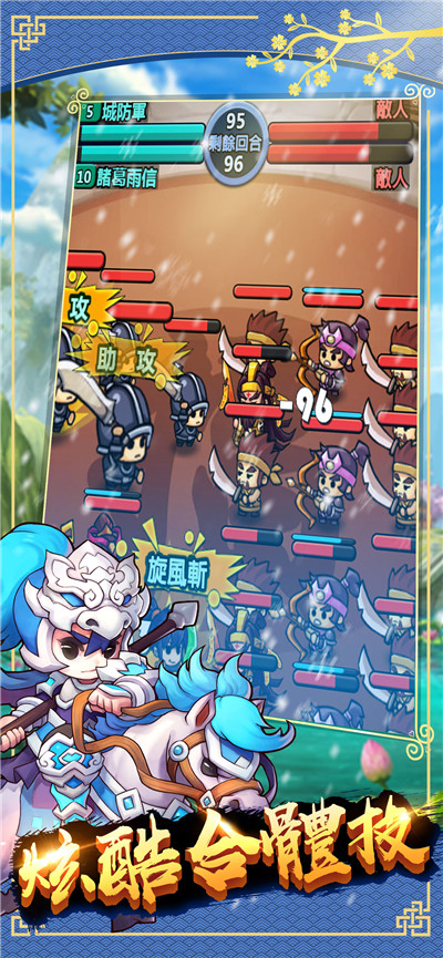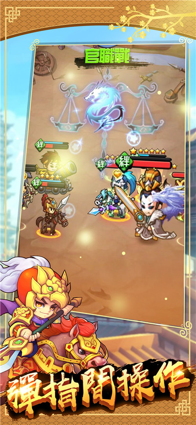 以真实三国历史为剧本,使用Q版的人物模型,不仅游戏画风亲民,玩法方式多种多样:培养军队、招募武将、征战沙场,总有一种玩法能够吸引你。