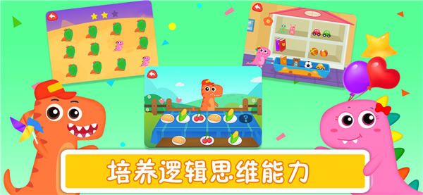 可爱恐龙哥哥和恐龙妹妹全程陪伴,生动有趣的学习,锻炼脑力。