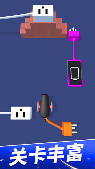游戏中的物理引擎真实模拟了插头碰撞效果,玩家必须考虑插头之间的空间关系。每个关卡都设有三星评价系统,想要完美通关就需要在限定步骤内完成任务。随着关卡推进,还能解锁具有特殊功能的稀有插头皮肤,这些收藏品不仅能装饰你的插头,有些还附带缩短充电时间等实用加成效果。