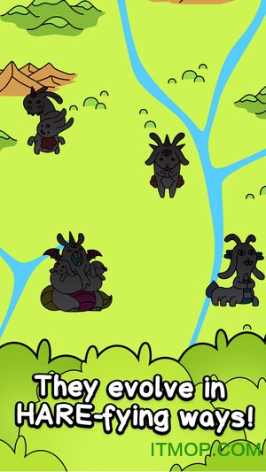 -把两同类型的兔子拖到一起来产生新的生物,合成系统包含上百种可能的进化组合