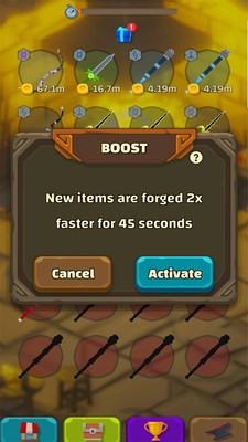 根据不同的订单来生产各种类型的武器,需要在规定的时间内完成所有的武器订单,解锁强大的符文,让自己的武器更强。随着游戏进程,玩家将接触到来自不同种族的特殊订单,每个订单都会带来独特的挑战和丰厚奖励。