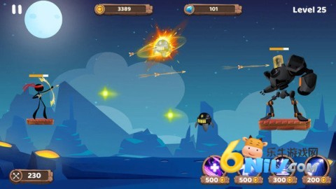 游戏采用直观的触控操作方式,玩家只需滑动屏幕即可控制角色移动,并通过右侧的虚拟滑块调整弓弦拉伸幅度。独特的瞄准系统会显示风向指示器,帮助玩家判断箭矢的飞行轨迹。当准星与目标重合时,松开手指即可发射箭矢,蓄力时间越长,箭矢的穿透力和伤害就越大。游戏中的敌人会随机移动,考验玩家的预判能力。精准命中敌人的脆弱部位可以触发致命一击和连击效果,获得额外分数奖励。每个关卡都设有不同的障碍和挑战,玩家需要突破重重阻碍到达终点,系统会根据击杀表现和通关时间进行评分,收集勋章可以解锁更强大的弓箭装备。