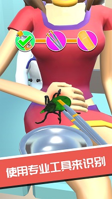 游戏提供了多种常见的皮肤外伤病例,包括被虫咬伤、指甲损伤、眼部检查和皮肤过敏等,让玩家能够接触到不同类型的医疗场景。在治疗过程中,你需要准确识别并使用相应的医疗工具,按照正确的操作流程为患者处理伤口。游戏特别注重细节,要求玩家根据患者的症状进行仔细检查,找出病因并提供合适的治疗方案。为了让玩家更容易接受,游戏采用了卡通化的画面表现方式,避免了过于真实的流血场景,同时简化了伤口处理的操作流程,让初学者也能快速掌握。