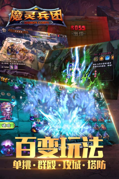 《魔灵兵团》独创了战棋+塔防战斗模式。战棋和塔防元素都游戏带来丰富的策略性,碰撞在一起更带来了许多前所未有的新奇体验。游戏对战斗规则的重新定义,解决了战棋游戏节奏拖沓的硬伤。战斗的流畅性和爽快感更加适合手游。拥有众多全新对战素材和玩法内容设计的手游,类型极为众多的装备道具,各种变化性的战场策略以及多场景的劲爆对决,让玩家享受执掌全局、运筹帷幄的英雄风采!