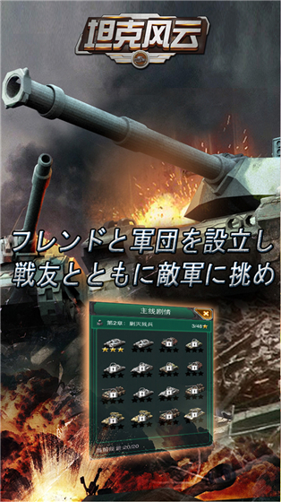 《坦克风云》的故事从这里开始,在德国发动西线闪击前夕,以美、英、苏为核心的多国出于各自不同的目的,成立了一个独立的特遣战车兵团,展开了不挂国旗的秘密作战,协助各个被侵略国军队抵抗邪恶轴心国的入侵。战争后期,她又成为盟军反击的奇兵和尖刀,配合主力部队在战斗的第一线的展开了各种特种作战。