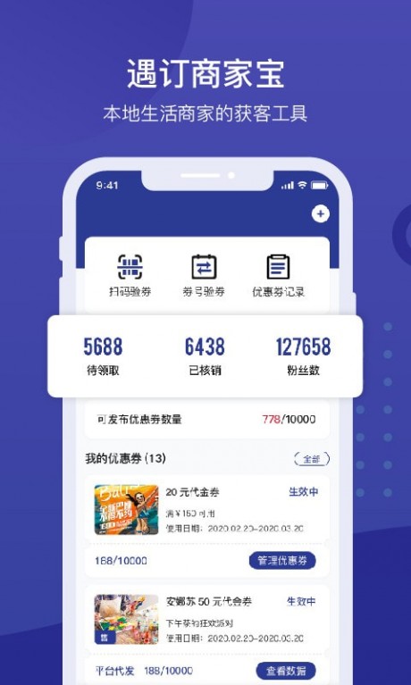 扫码验证优惠券:支持通过遇订商家宝app、小程序、微信等多平台扫码核销优惠券,操作简单便捷;