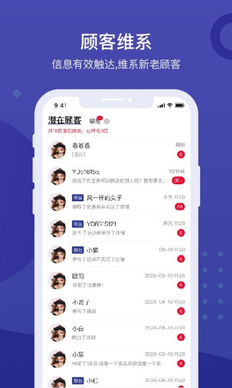 客户管理:遇订商家宝app支持查看用户收藏列表,在优惠券核销时可及时联系客户进行回访,提升客户粘性;