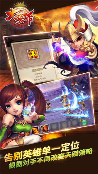 大英雄将会带给玩家一个全新的体验,无论是从战斗前的定位玩法、英雄技的养成还是战斗过程中的技能释放,所有设计都恰如其分,按玩家爱好的习惯而制定。