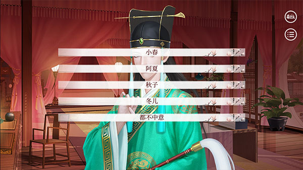 冬:银两+、才艺+(好事 如果主控是秀女中位分最高的,冬儿会让你小心谨慎,出现选项【不足为惧】(心机-10)【知道了】(心机+10))