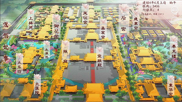 随后回到大地图,去【建章宫】刷太后好感,一旬去四次,直到好感100。尤其是擅权太后,若先高宠而太后好感低会被禁足。
