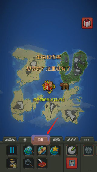 想要生物和怪兽就可以按下面这个按钮;
