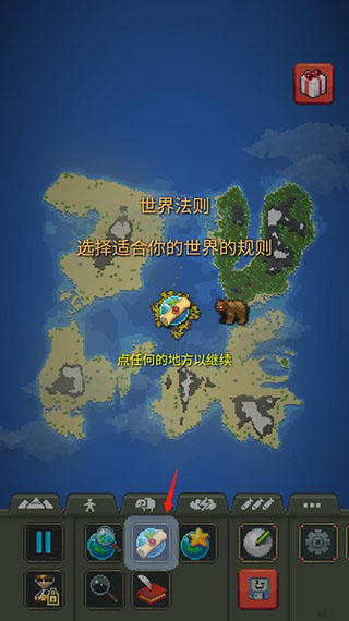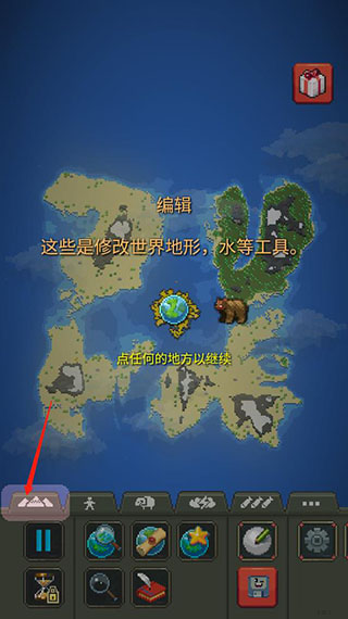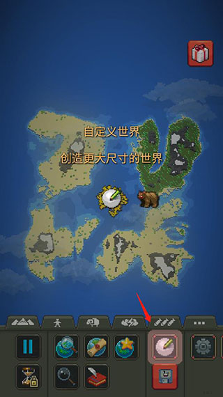 如下图所示,这个编辑按钮可以修改世界地形、水等;