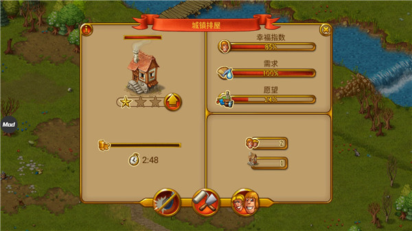 对一个城镇的规划需要大量的人力,所以继续建造几个房子吧。增加了人口就会有更多的人去干活,加快城镇建造进程。