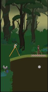这个游戏是以踩高跷的形式行走,中间设有障碍,到达终点即可通过。