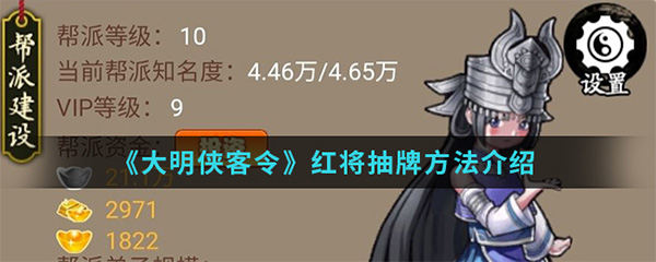 在大明侠客令红将怎么抽取呢?游戏中的红将是很多小伙伴想获得的角色,但是不知道该怎么抽有什么抽牌技巧,那么想知道红将抽牌方法的就跟随小编一起来看看吧。