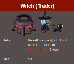 在交易者聚集地(Trading Camps)里的巫婆(Witch)用10个食物买。
