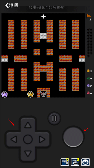 (2)玩家需要按住左边的上下左右方向键来操作坦克进行走动,当遇到敌方的坦克来攻击你的坦克时,你需要按住右边的小圆圈发出炮弹来抵抗敌方坦克。