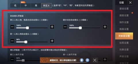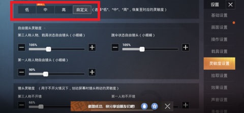 系统推荐【中级】灵敏度,(选择低、中、高,恢复至对应的灵敏度)