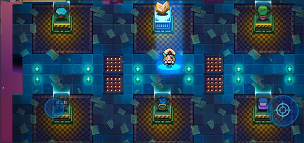 进入游戏后,通过左边的轮盘进行控制角色移动,使用右边进行射击。