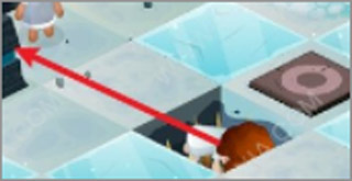 走中间的冰冻道路,落水后将清除掉最初河中的主角石像。