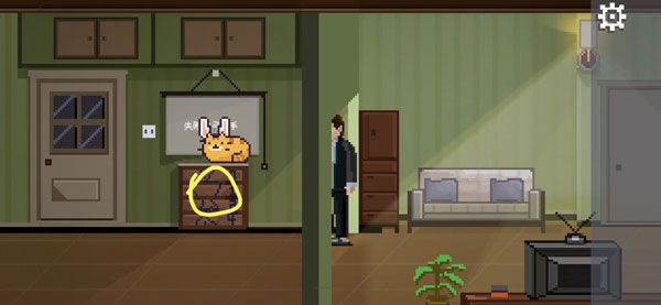 在第三章《邪恶生物》,需要解开有两个谜题,第一个是转柜子,点击白色的猫头,会出现旋钮关机关,只要旋转的白点和柜子上的钮为同一个方向,就可得到黄金钥匙。