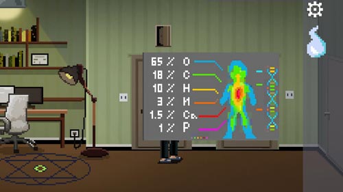 在开始调配药剂前,我们可以在书房的墙上发现一幅描绘人体元素分布的图画,其中氧(O)占比65%,碳(C)18%,氢(H)10%,氮(N)3%,钙(Ca)1.5%,磷(P)1%。请牢记这些比例和它们各自的颜色。