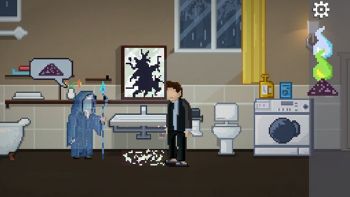 首先来到浴室,多次点击镜子,就会出现一个魔法师。