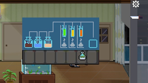 接着返回客厅,点击桌子上的实验台,会出现烧杯和试管,左侧三个烧杯按照字母从小到大的顺序放置,右侧的试管根据人体元素比例的大小,从大到小放置。