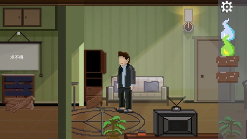 返回客厅,点击地上刚刚敲碎的柜子门,可以获得木板。