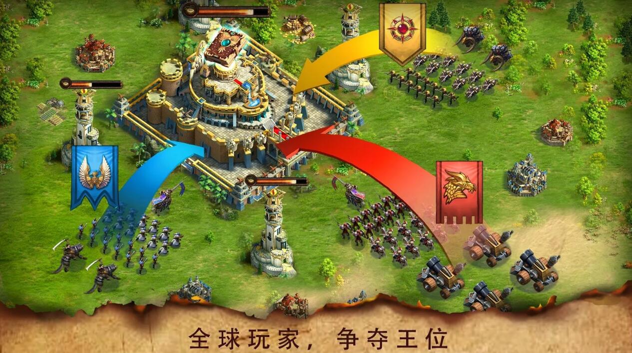 在宏伟的大陆之间有着一个个的城堡建立在土地之上,通过不断地培养成长慢慢发展自己的联盟,扩建自己的土地;新手玩家应该优先完成主线任务,这些任务会引导你了解游戏的基本机制,同时提供丰厚的起步资源。