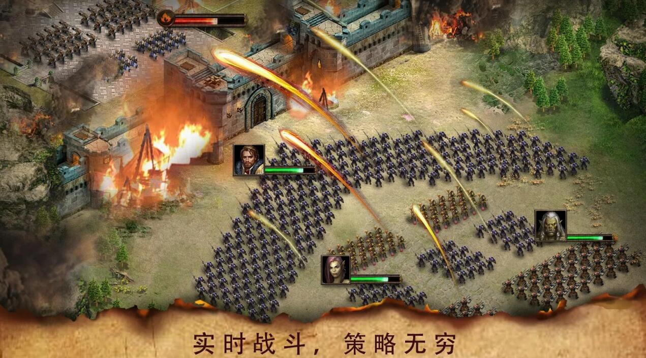 观看实时作战,打造豪华的装备,宝石,提升作战能力,运筹帷幄;战斗系统采用即时制,玩家可以实时指挥部队,同时通过装备强化和宝石镶嵌来提升战力。