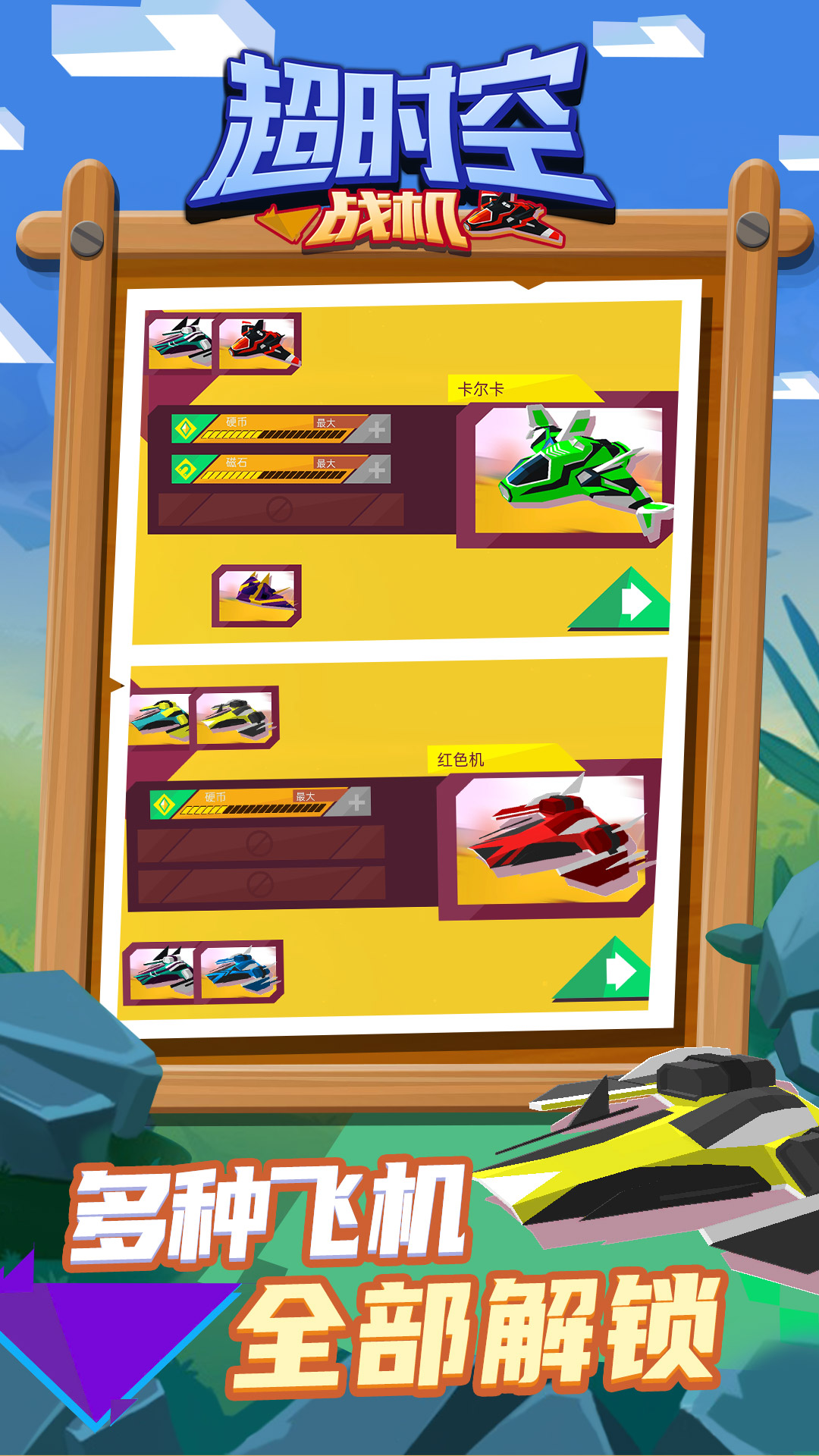 多种飞机全部解锁:通过游戏进程,你可以解锁更多强力战机,每一款战机都有独特的属性和技能,让你的战斗更加多样化。